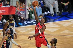 体育资讯2月16日讯 NBA全明星正赛,美国新星队47-21击败美国星条队,夺得冠军。