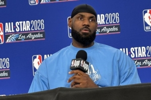 体育资讯2月16日讯 今日,湖人球星詹姆斯举行了全明星新闻发布会。