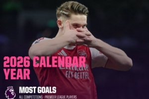 体育资讯2月23日讯 在本轮英超阿森纳4-1大胜热刺的比赛中,约克雷斯梅开二度。以下为英超球员在2026年各项赛事进球榜: