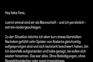 “但我想澄清一下事情的经过:当时感觉好像有十名亚特兰大球员同时跳起来大声抱怨,我也站起来让他们坐下。仅此而已。没有任何侮辱、不尊重或其他任何不当行为。即使赛后,裁判也无法向我解释为什么我因此被红牌罚下。我只是想澄清一下。”